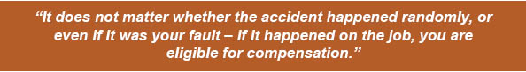 It does not matter whether the accident happened randomly, or even if it was your fault – if it happened on the job, you are eligible for compensation.